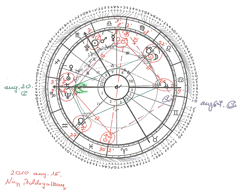 Augusztus 17-e és október 3-a között Radix képletünk nyolcas és szolár képlet kilences, majd tizes házában jár az éltető Nap. Szeptember 3-ig, a visszavonultság, a belső, tudat alatti gondolatok, spirituális meglátások, de akár nehézségek kerülhetnek előtérbe. A veszteségek árán való lelki fejlődés, a természeti katasztrófák, a külvilág különféle csapásai mind jelzésként kerülnek életünkbe. Ebbe a lemondásokkal járó, rengeteg tanulnivalóval szolgáló időszakra esik Augusztus 20-a.