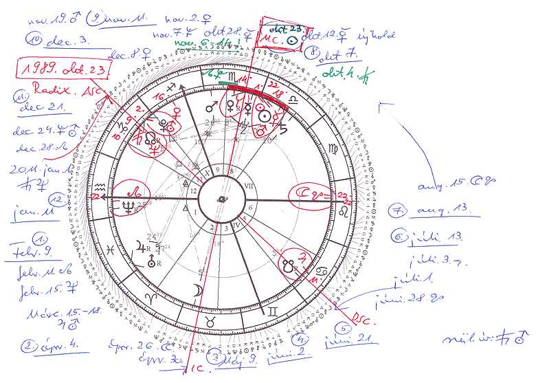 Az új Szolár évben a nehézségek házából kilépve, a 9-es házban hittel, erkölcsiséggel, jogszerűséggel léphetünk tovább november 11-e táján. A `89-es Radix horoszkópra vetítve pedig a X-es ház csúcsán, életünk haladási irányán "jár" a Nap, mely átvezet a kormányzat és vezetés életterületére.