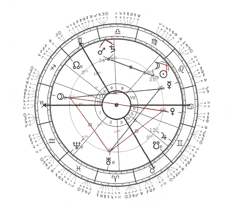 A Uránusz-Plútó-Vénusz T-kavdrát kényszerítése tovább hat, ám a T-kvadrátot trigonnal oldó Merkúr, most a Plútóval is nagy oktató kapcsolatba kerül. Ez a zárt konstelláció jelzi, hogy ha urai vagyunk a kijelentéseinknek, és a várható váratlan fordulatokhoz is helyesen alkalmazkodunk, akkor a külvilágunkat is képesek vagyunk közlendőinkkel, egyenes igazmondásunkkal befolyásolni, sőt "anyagi ügyeinket" is sikeresen rendezhetjük ezekben a napokban. Az Újhold tranzit tengelye megegyezik a Radix tengellyel. A Radix Descendensen álló Jupiter és Tranzit Descendens közeli Vénusza együtt áll egymással. Vagyis a kis és nagy szerencse bolygói "találkoznak" össze. Más értelemben a pénz és igazság, a jog "találkozik" szerencsésen egymással. Tehát a nemzetet érintő anyagi-pénzügyi ügyeinkben is kedvező pillanatok adódhatnak!