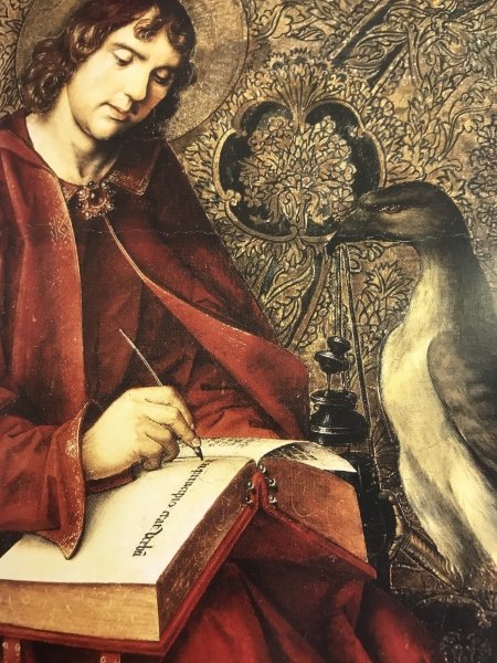 De ő az a tanítvány is, aki élete vége felé megírta evangéliumát, amelyben visszatekintve bemutatta azokat az eseményeket, amelyeknek szemtanúja volt a múltban, s megírta a jövőt, eljövendő látomásait is a Jelenések könyvében. János az Időkapuban állva, a múlt és jővő találkozásában, két lábbal áll a mindig ható, Mindenható jelenben...Ezért a saját szájával hirdette az Úr mondandóját: