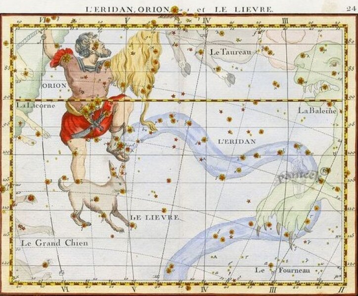 Ő a magyar csillagmítoszi hagyomány Nimródja, az ikrek, Hunor és Magor atyja, ki egyszerre uralja az égi egyenlítő által kettévágott alsó és felső világokat, azaz szimbolikusan a látható, földi, anyagi lét és a”láthatatlan”, szellemi világ közötti harmonikus egyensúlyt. Eközben a kezével a “Lelkek útjához”, a Tejúthoz érve, az isteni minőségbe emeli az oda igyekvő emberi lelket, lábával pedig - amely a lépés, az ugrás szimbóluma -,belelép az égbolt misztikus folyójába, az itt eredő Eridanusba…