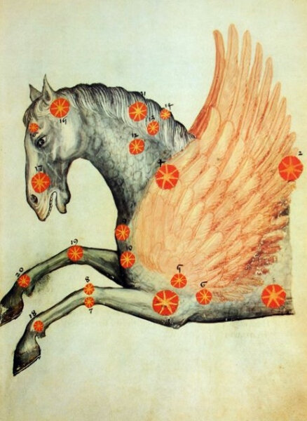 A tudatalattinkban élő ősképek pedig az ég abroszán hevernek, a fejünk fölé vannak rajzolva a Kis Ló, a Szekeres, a szárnyaló Pegazus, a Nyilazó Kentaur csillagkompozícióinak fénylő képeiben – ilyenkor, Pünkösd jeles napjaiban is...