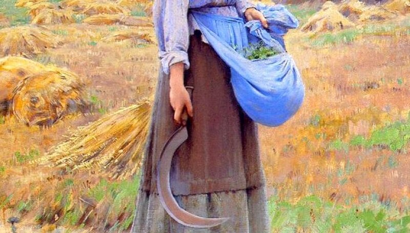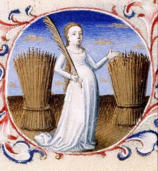 A búza növény - amely a szimbólumok ősi nyelvezete szerint nőnemű élőlény - az évkör ezen idejére aranysárga „királyi színbe” öltözve, megérve az isteni akarat beteljesítéséhez, fejet hajt a Teremtés szándéka előtt. Az Élet magasabb rendű folytonosságába ágyazódó végzetét várja. Hiszen