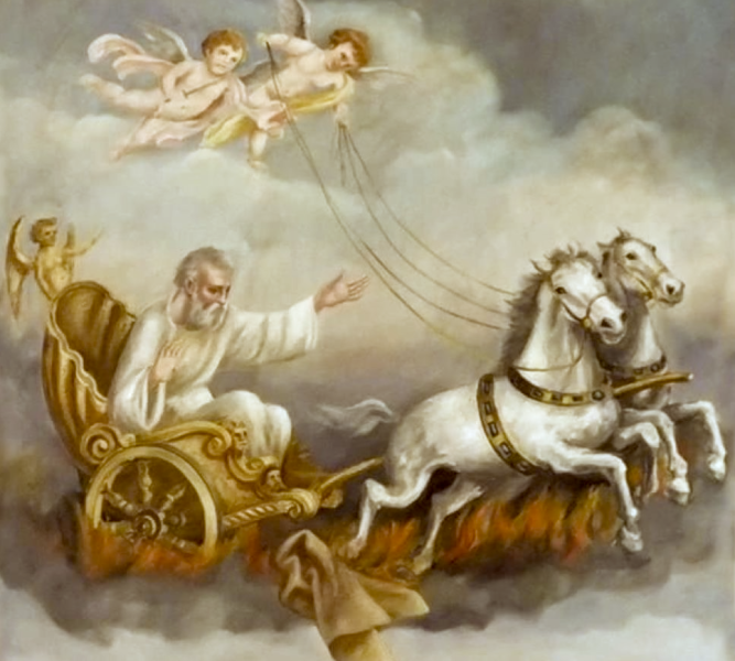 hanem élő lélekként, tűzszekerén ragadtatott fel.