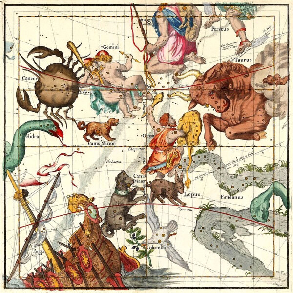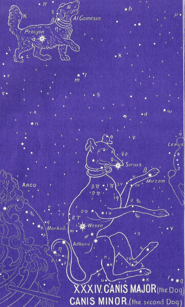 Ahogyan régen nevezték, Nyárhó közepén, Szent Jakab havában, Áldás idején, Rák zodiákus végén, amikor a fejünk felett ragyogó Nap a Procyonnal és a Szíriusszal egy égi vonalba kerül, égi kutyák "vonyítanak" a napfényes égbolton fölöttünk... Pontosabban a kutyacsillagképek és "kutyacsillagok": a Procyon és a Szíriusz, a Kis és Nagy Kutya fénylő csillagai. Amelyről a "kánikula" szó maga is mesél...
