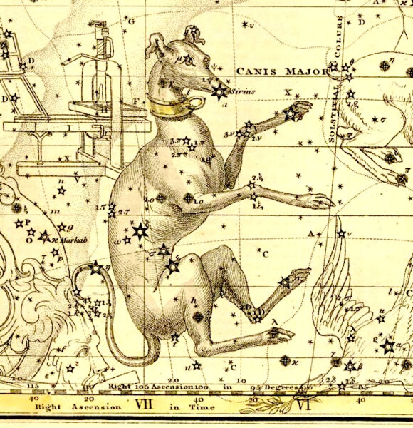 A Nagy Kutya csillagkép ezzel szemben igazi égi ordas. Területe nagy, és benne található a Szíriusz, a Földről nézve legfényesebb csillag. Mindössze 8,7 fényévre van tőlünk, és télen az Oriontól keletre ragyog. A Szíriusz a téli hatszög legalacsonyabb csúcsa, mellette Procyon és Rigel is téli fényhármasba fog.