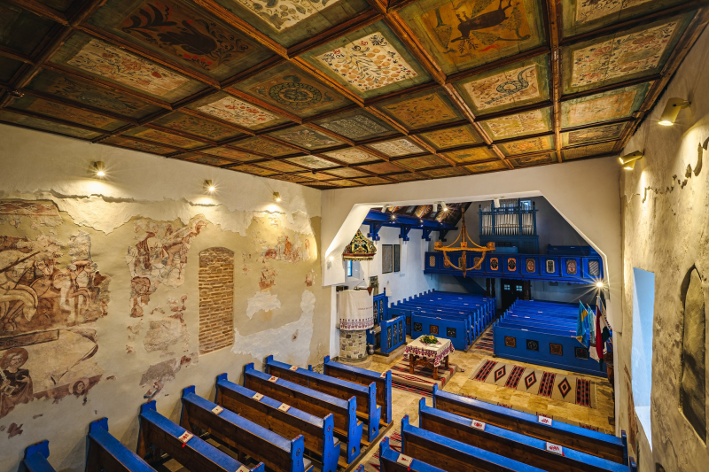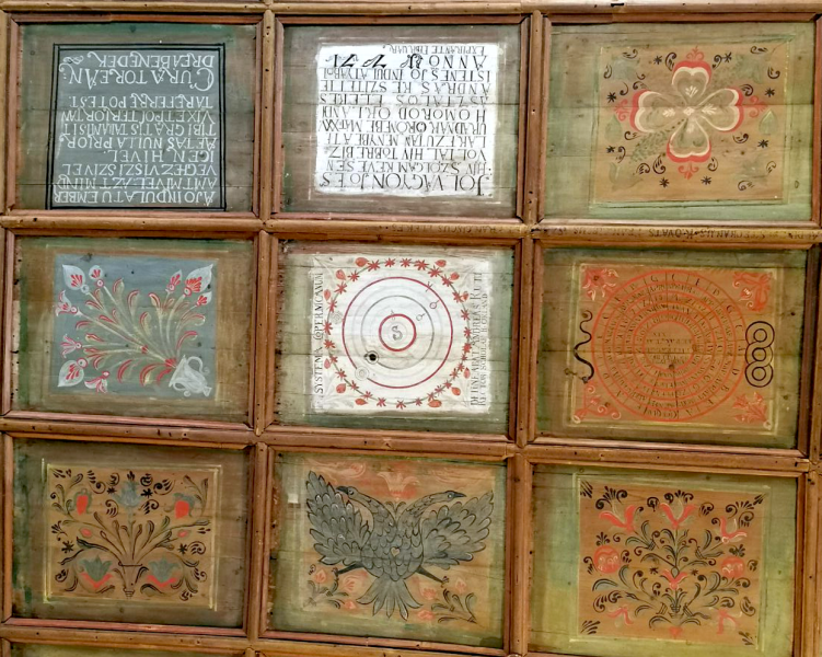 Az oklándi unitárius templom — az unitárius vallás bevett felekezetté válásának 200. évfordulóján, 1771-ben készült, ma is megcsodálható kazettás mennyezete — nem csupán harmonikus díszítő motívumok festett felülete, hanem egy olyan unitárius világkép hordozója, amelyben a tudományos idő és a liturgikus idő egységében jelenik meg a teremtett világ rendje. A híres, kör alakú, számokkal, jelölésekkel és hónapnevekkel ellátott, a szent idő rendjének meghatározását szolgáló húsvétszámító tábla, az AEPACTA-kazetta mellett a templom másik különleges darabja a Kopernikuszi világképet mennyezetre rajzoló kazetta.